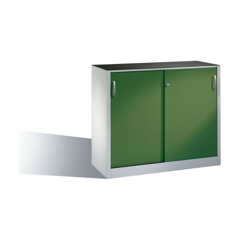 C+P Werkzeug-Beistellschrank mit Schiebetüren innen 1 Boden Front Resedagrün Korpus Lichtgrau