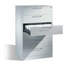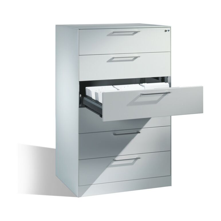 C+P Karteischrank Asisto für Karteikarten DIN A5 quer, 6 Schubladen, dreibahnig Front Lichtgrau Korpus Lichtgrau