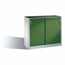 - 1x C+P Werkzeug-Beistellschrank mit Schiebetüren, innen 1 Boden, H1000xB1200xT500mm Front Resedagrün Korpus Lichtgrau