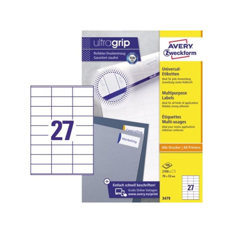 Avery Zweckform Universaletikett 3479 70x32mm weiß 2.700 St./Pack.