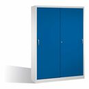 C+P Werkzeugschrank mit Schiebetüren, innen 2 x 4 Böden, H1950xB1600xT400mm Front Enzianblau Korpus Lichtgrau