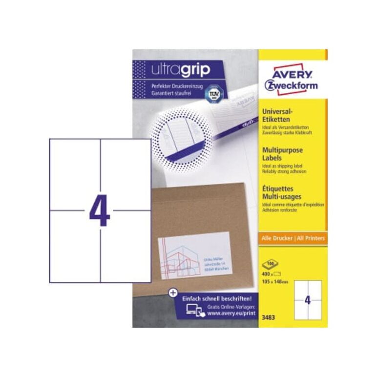 Avery-Zweckform 3483 Universal-Etiketten 105 x 148mm Papier Weiß 400 St. Permanent haftend Tintenst