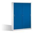 - 1x C+P Werkzeugschrank mit Schiebetüren, innen 2 x 4 Böden, H1950xB1600xT500mm Front Enzianblau Korpus Lichtgrau