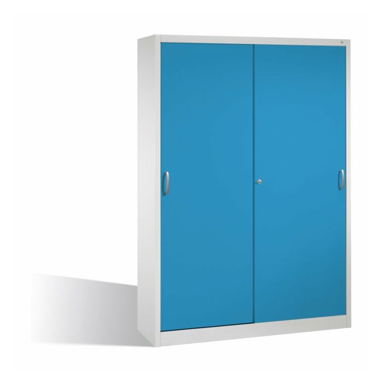 C+P Werkzeugschrank mit Schiebetüren, innen 2 x 4 Böden, H1950xB1600xT400mm Front Lichtblau Korpus Lichtgrau
