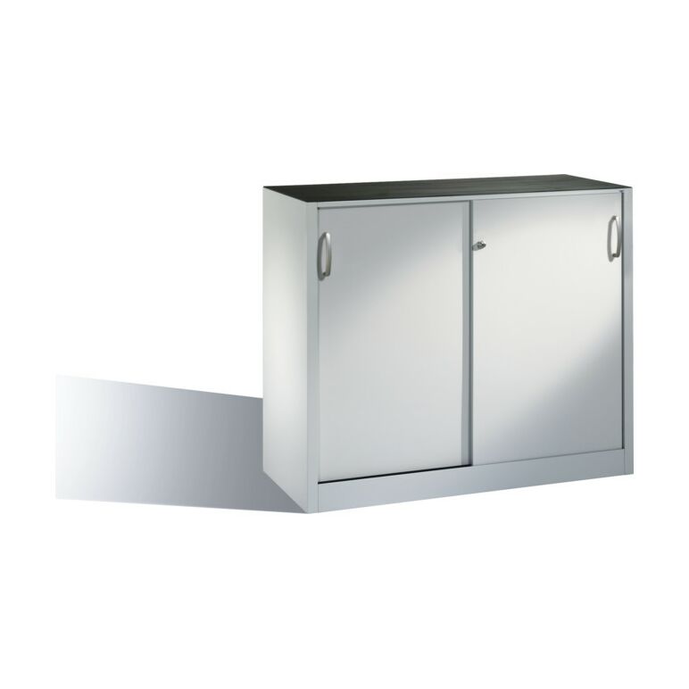 - 1x C+P Werkzeug-Beistellschrank mit Schiebetüren, innen 1 Boden, H1000xB1200xT500mm Front Lichtgrau Korpus Lichtgrau