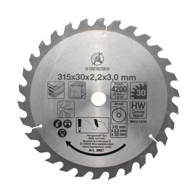 BGS Do it yourself Hartmetall-Kreissägeblatt Ø 315 x 30 x 3,0 mm 30 Zähne