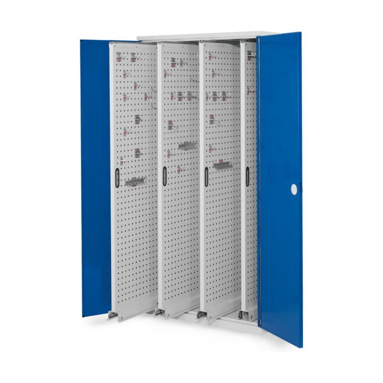 Kappes RasterPlan Vertikalschrank Modell 83, 1950 x 1000 x 600 mm, RAL 7035/5010 | Doppelwandtür, 4 Auszüge Lochplatten