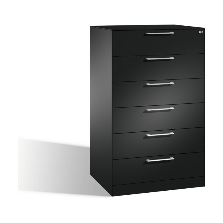 C+P Karteischrank Asisto für Karteikarten DIN A5 quer, 6 Schubladen, dreibahnig Schwarzgrau