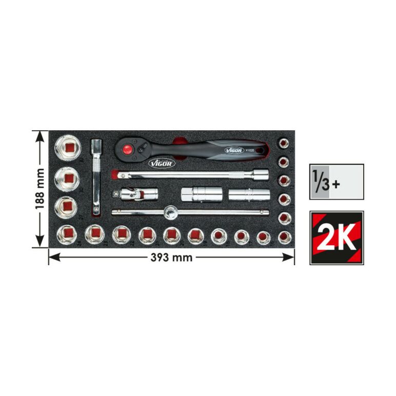 VIGOR Innenvierkant Antrieb 12,5 = 1/2 Zoll Steckschlüssel-Werkzeug-Satz V4975 Anzahl Werkzeuge: 25