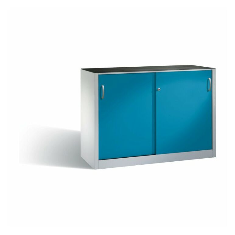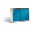 - 1x C+P Werkzeug-Beistellschrank mit Schiebetüren, innen 2 x 1 Boden, H1000xB1600xT600mm Front Lichtblau Korpus Lichtgrau