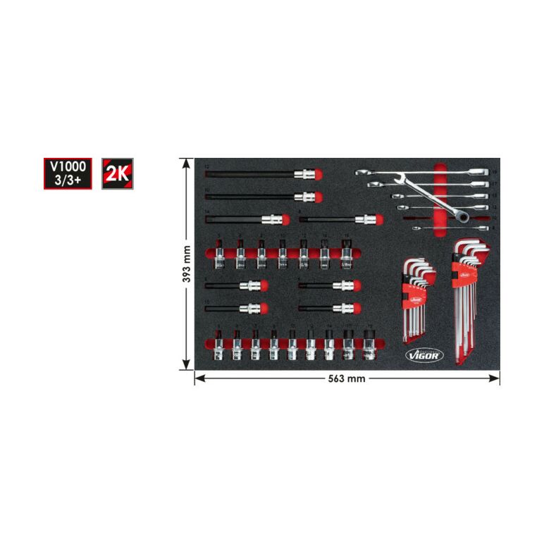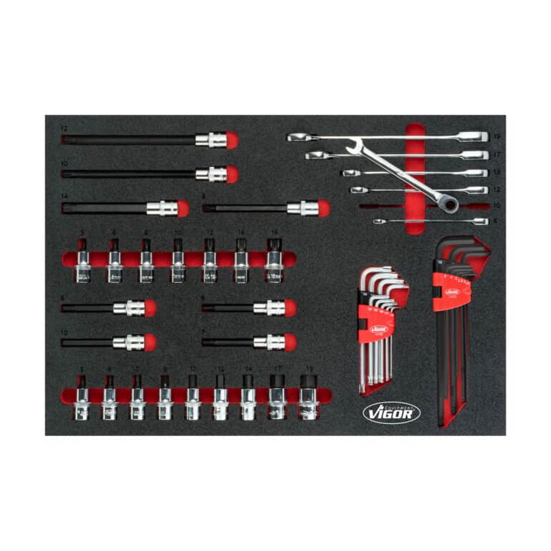 VIGOR Steckschlüssel-Einsatz-, Winkelschraubendreher-, Ratschen-Ring-Maulschlüssel-Satz V5173 Anzahl Werkzeuge: 48