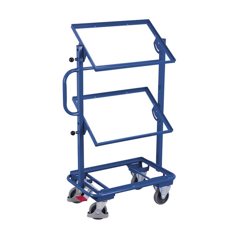 - Radsatz: Bereifung aus elektrisch leitfähigem Vollgummi auf Kunststofffelge mit Präzisions-Rillenkugellager, grau, Ø 125 mm, 2 Lenkrollen mit Zentralbremse EasySTOP und 2 Bockrollen, Lenkrollen mit Fußschutz
