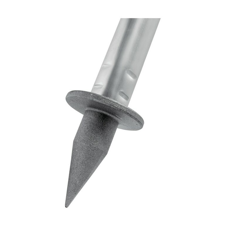 Anlegeleiter mit geführten Alu-Stützen zur Verwendung bei Ernte- und Pflegearbeiten · Stützen höhenverstellbar · Verstellbereich 280 mm, innerhalb dessen die Stützen im Abstand von 140 mm abgesteckt werden können · Serienmäßig mit 70 mm langen Alu-Spitzen · Maximale Belastung 100 kg (1,0 kN) · Verwendung nur auf gewachsenem Boden
