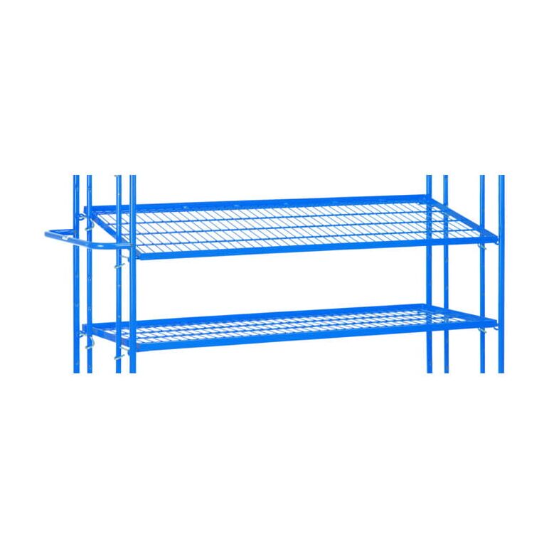 • Aus Drahtgitter 140 x 40 mm, pulverbeschichtet RAL 5007. Tragkraft pro Einlegeboden 50 kg.