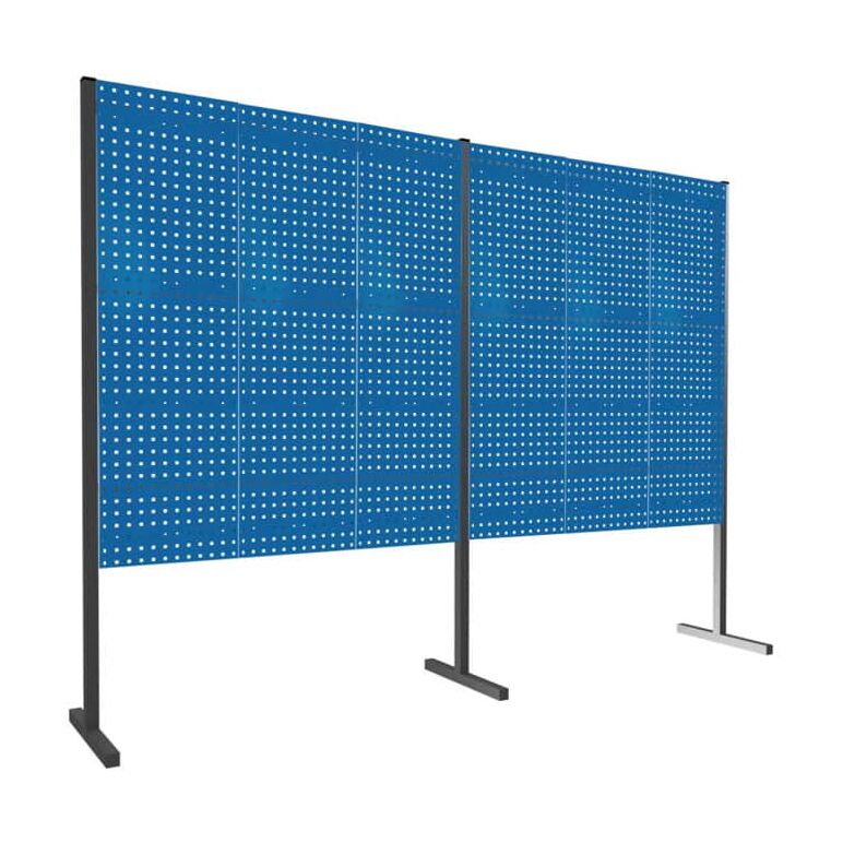 RasterPlan Trennwand Doppelfeld 180°, L1500 / 1500 mm, H1500 mm, RAL 5010 mit 6 RasterPlan Lochplatten