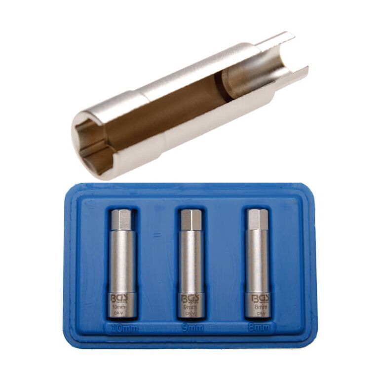 • Geschlitzte Steckschlüssel-Einsätze Antrieb Außensechskant, SW 8 - 9 - 10 mm
