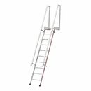 Stufenanlegeleiter mit beidseitigem Handlauf und Geländer · Leiterbreite 500 mm · Stufentiefe 85 mm · Stufenabstand 230 mm · Podestlänge 450 mm · Inkl. Einhängehakenset Ø 35 mm