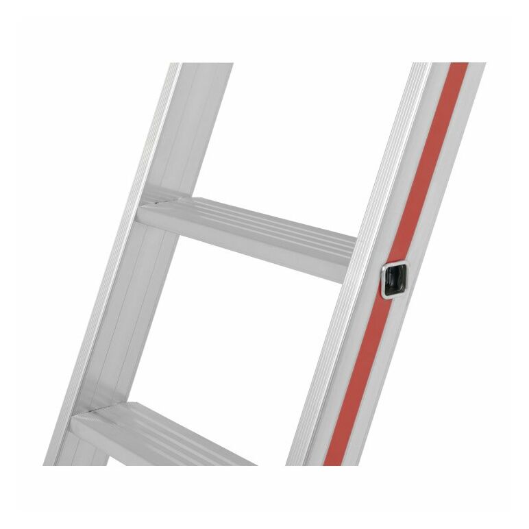 Stufenanlegeleiter mit beidseitigem Handlauf und Geländer · Leiterbreite 500 mm · Stufentiefe 85 mm · Stufenabstand 230 mm · Podestlänge 450 mm · Inkl. Einhängehakenset Ø 35 mm