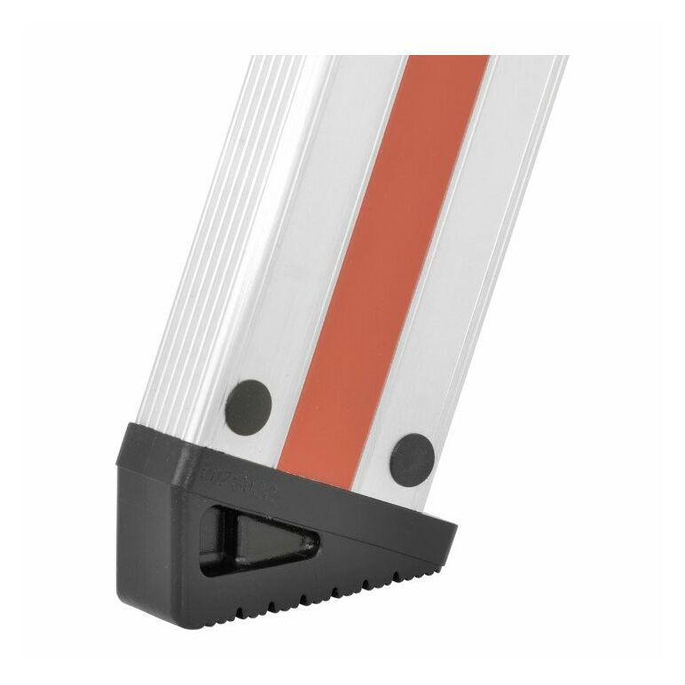 Stufenanlegeleiter mit beidseitigem Handlauf und Geländer · Leiterbreite 500 mm · Stufentiefe 85 mm · Stufenabstand 230 mm · Podestlänge 450 mm · Inkl. Einhängehakenset Ø 35 mm