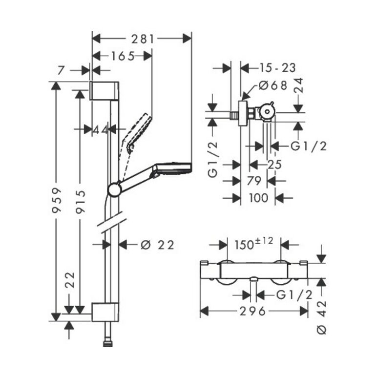hansgrohe Crometta Theromstatset 0,90m, 2 Strahlarten, Weiß/Chrom