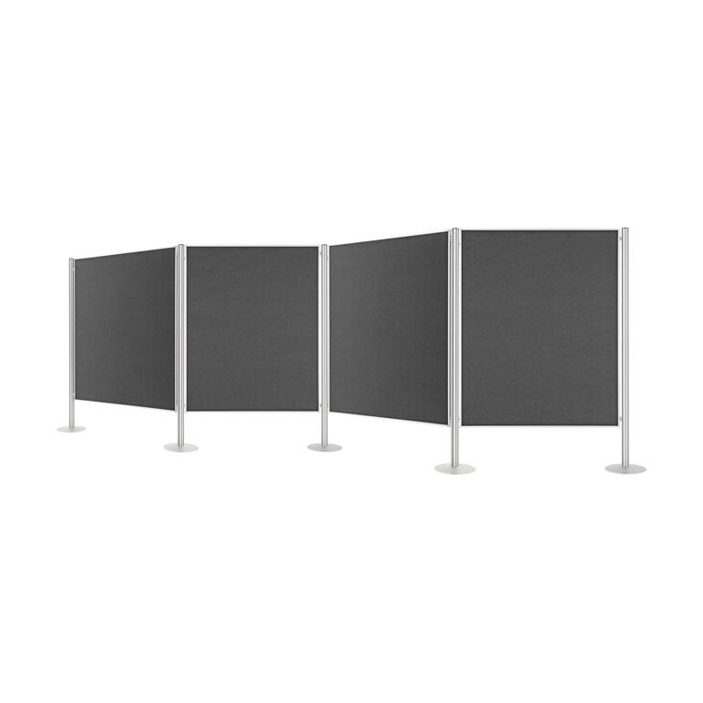 - Set 4 mit 4 x Pinnwand 1200 x 1500 mm im Aluminium-Systemrahmen, beidseitig Filz grau, 5 Achtkantsäulen mit Tellerfüßen