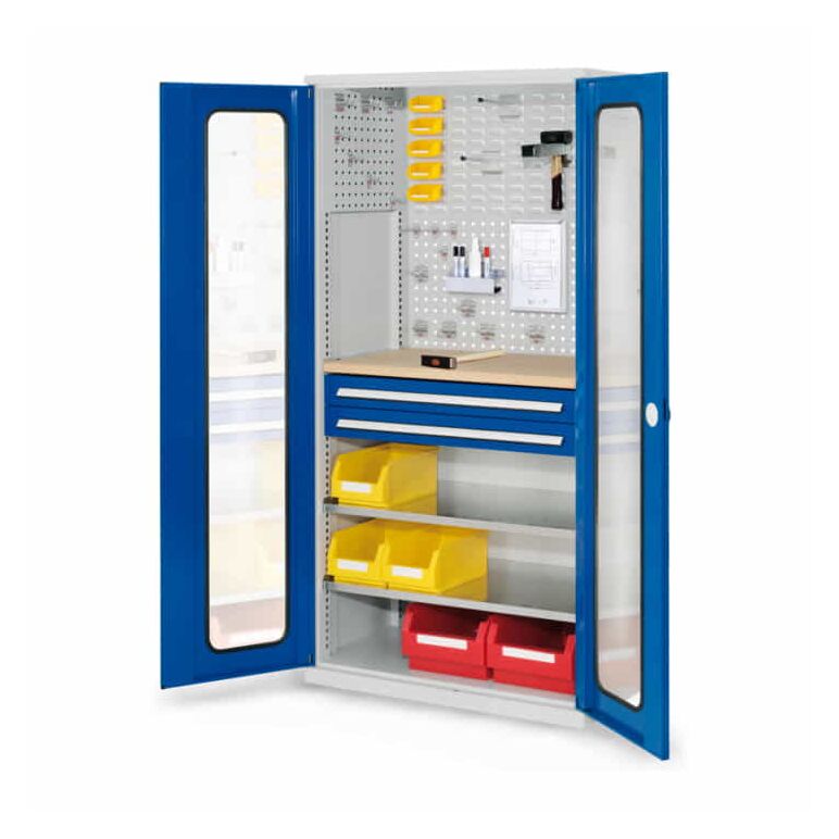 RasterPlan Schubladenschrank mit 2x Fachböden, Werkbank | HxBxT 1950 x 1000 x 600 mm | Blau
