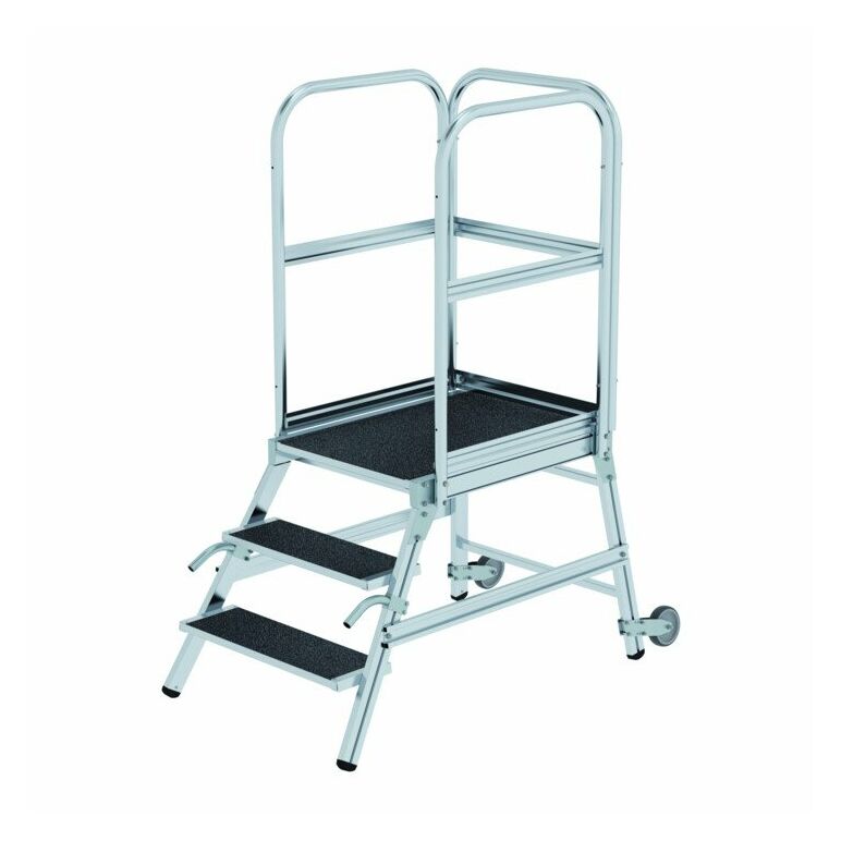 MUNK Günzburger Steigtechnik Podesttreppe einseitig begehbar mit Rollen& Griffen Korrundbesch. R13 8 Stufen