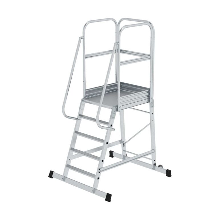 MUNK Günzburger Steigtechnik Aluminium-Podesttreppe einseitig begehbar fahrbar 5 Stufen
