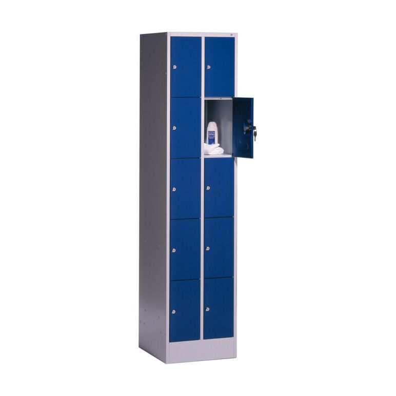 - 1x C+P Schließfachschrank Intro, 10 Fächer, H1950xB620xT500mm Front Enzianblau Korpus Lichtgrau