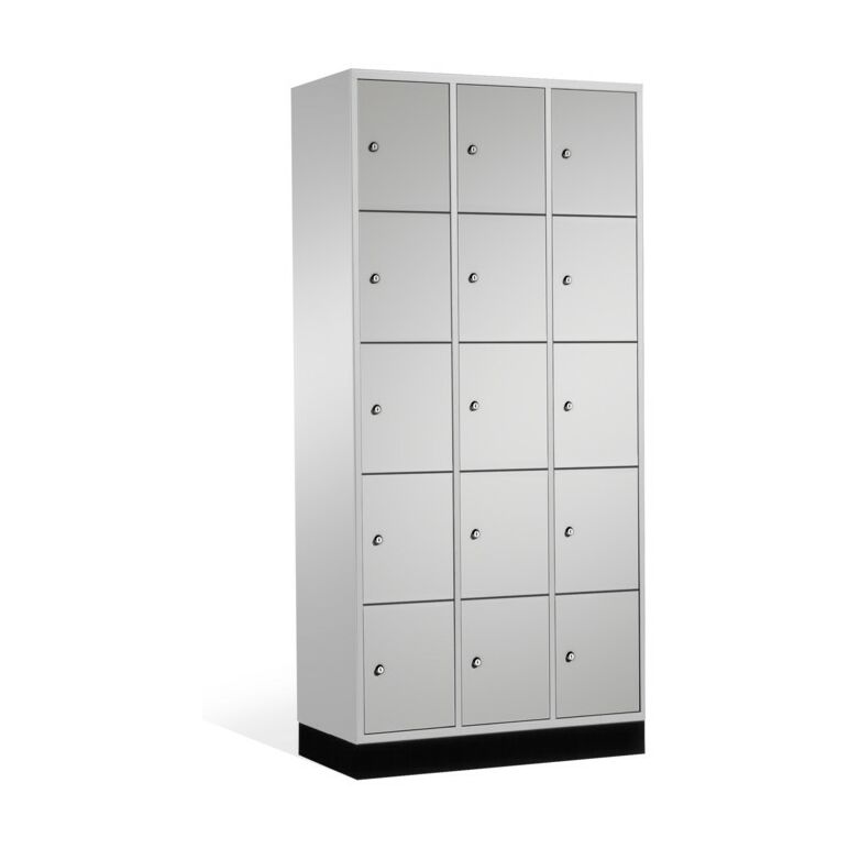 - 1x C+P Schließfachschrank Intro, 15 Fächer, H1950xB920xT500mm Front Lichtgrau Korpus Lichtgrau