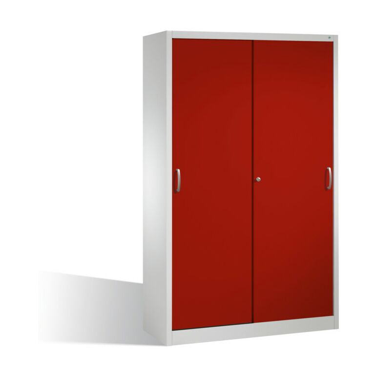 C+P Schwerlast-Werkzeugschrank mit Schiebetüren, 4 Böden, H1950xB1200xT500mm Front Rubinrot Korpus Lichtgrau