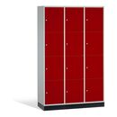 C+P Schließfachschrank Intro, 12 Fächer, H1950xB1220xT500mm Front Rubinrot Korpus Lichtgrau