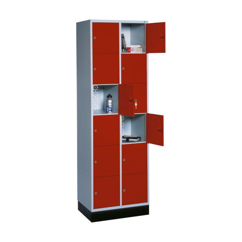 C+P Schließfachschrank Intro, 12 Fächer, H1950xB620xT500mm Front Rubinrot Korpus Lichtgrau