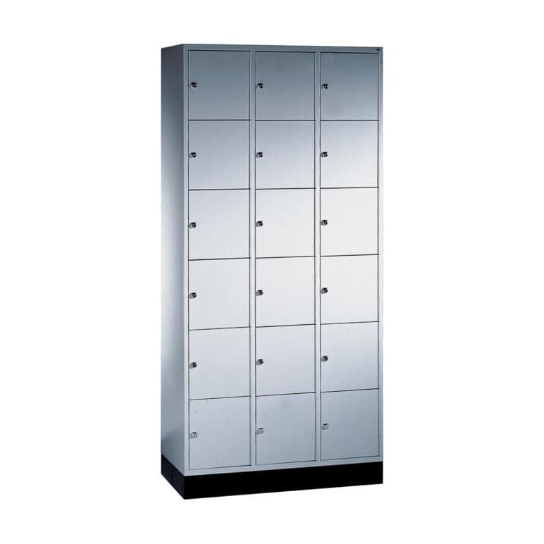 - 1x C+P Schließfachschrank Intro, 18 Fächer, H1950xB920xT500mm Front Lichtgrau Korpus Lichtgrau