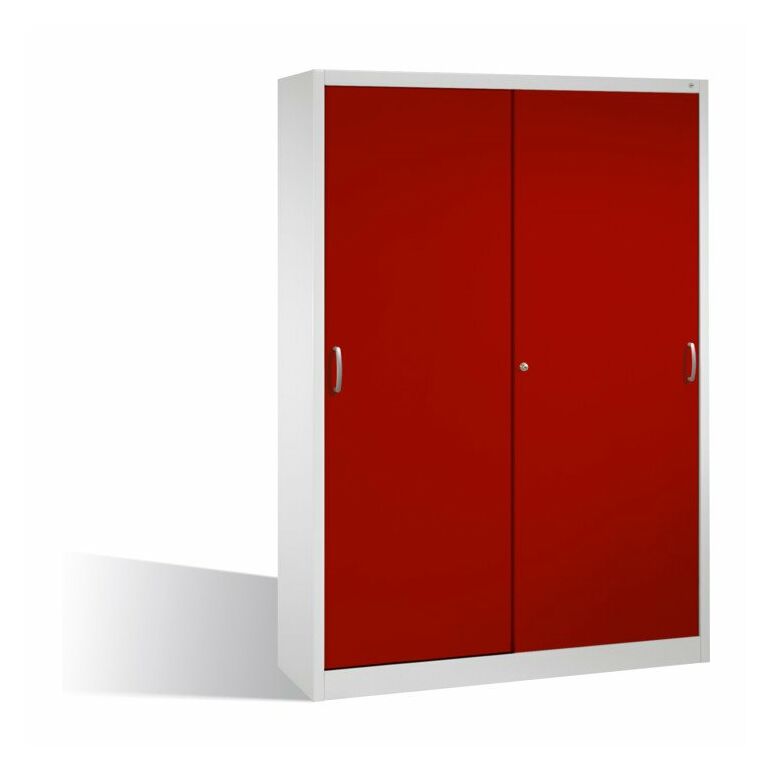 - 1x C+P Werkzeugschrank mit Schiebetüren, innen 2 x 4 Böden, H1950xB1600xT400mm Front Rubinrot Korpus Lichtgrau
