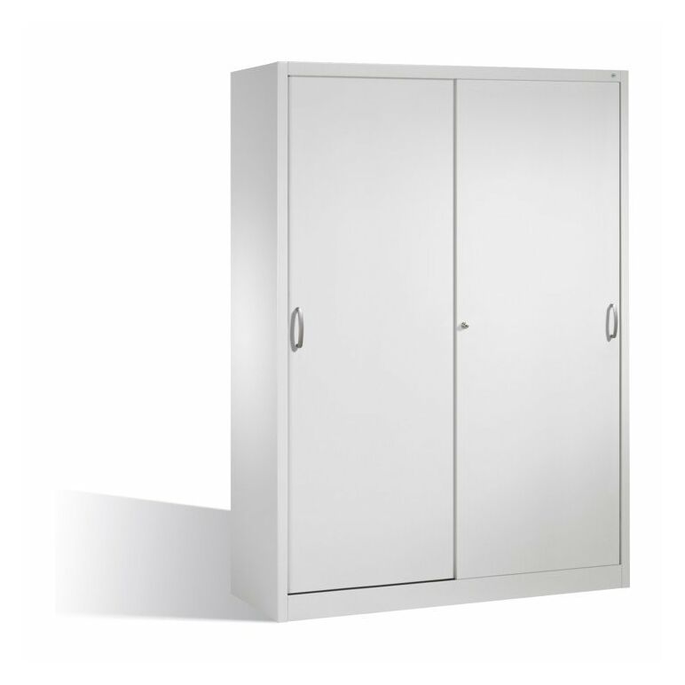 - 1x C+P Werkzeugschrank mit Schiebetüren, innen 2 x 4 Böden, H1950xB1600xT600mm Front Lichtgrau Korpus Lichtgrau