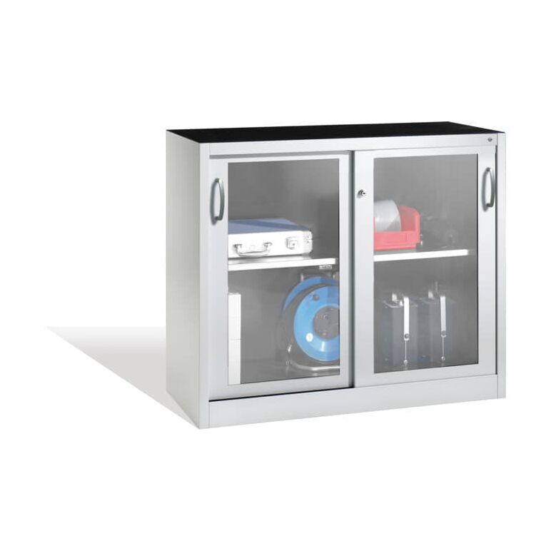 C+P Werkzeugschrank mit Sichtfenster-Schiebetüren, 1 Boden, H1000xB1200xT500mm Front Lichtgrau Korpus Lichtgrau