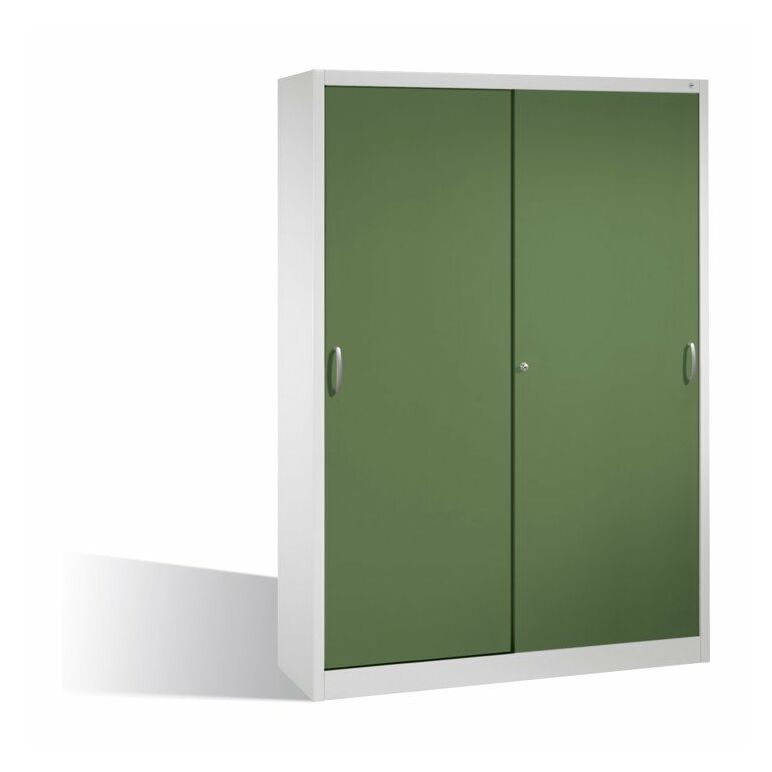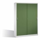 - 1x C+P Werkzeugschrank mit Schiebetüren, innen 2 x 4 Böden, H1950xB1600xT400mm Front Resedagrün Korpus Lichtgrau