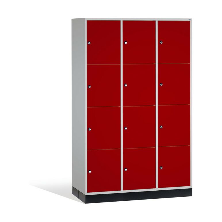 C+P Schließfachschrank Intro XL, 12 Fächer, H1950xB1220xT600mm Front Rubinrot Korpus Lichtgrau