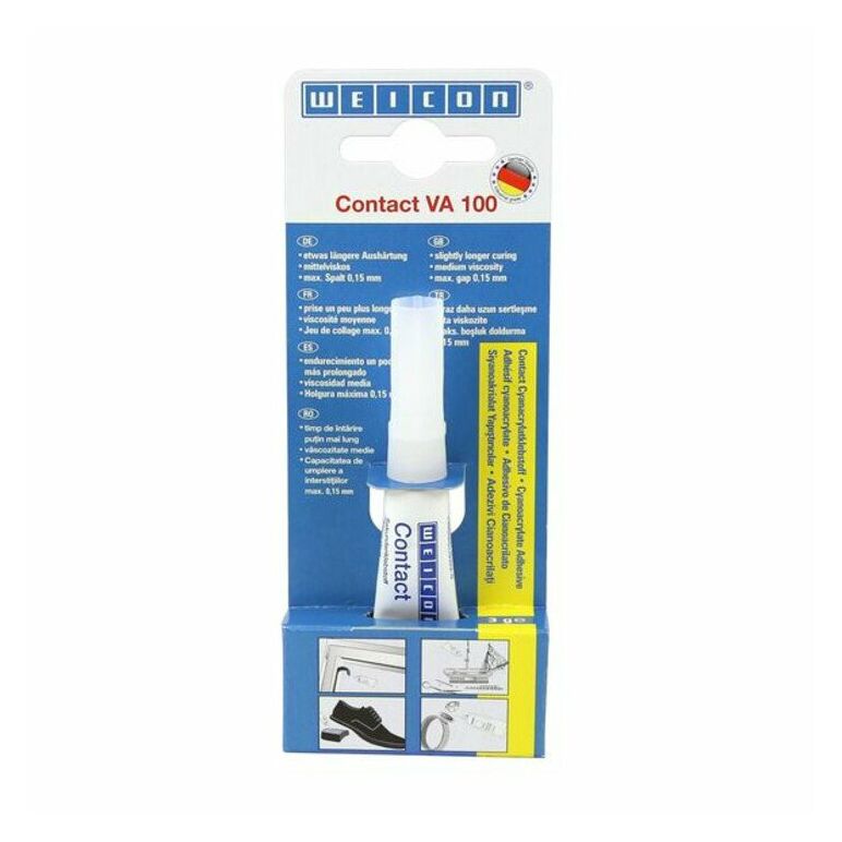 WEICON Contact VA 100 ist ein Universaltyp für die Verklebung von Metallen, Kunststoffen und Gummi, sowohl mit- als auch untereinander. VA 100 eignet sich ideal für den „Do-it-yourself“ Bereich, kann aber auch in vielen Bereichen der Industrie zum Einsatz kommen.