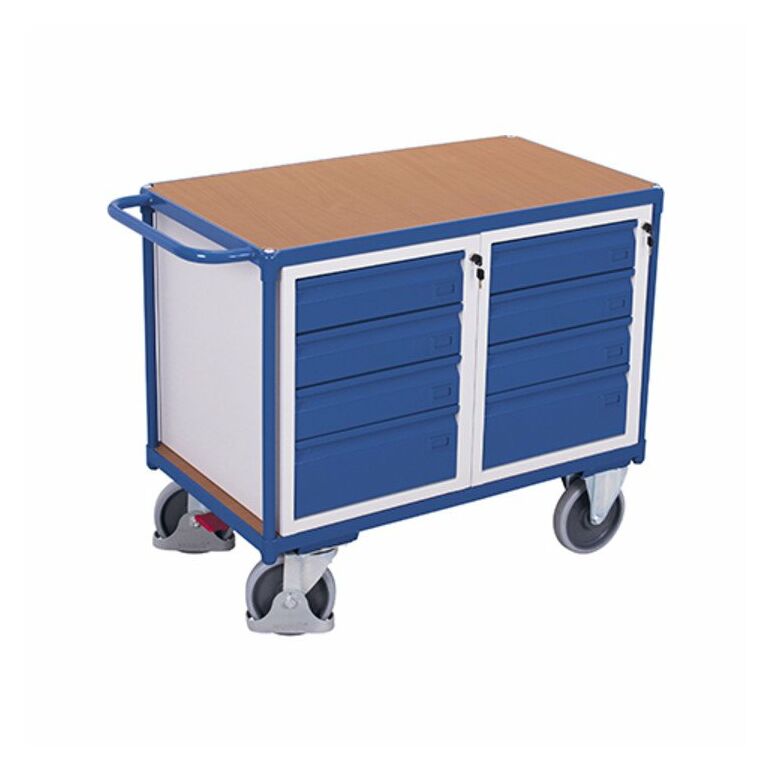 - 2 Schubladenschränke, mit je 4 rollengelagerten Schubladen, verschließbar mittels Zentralschließung über Einzelauszugssperre
