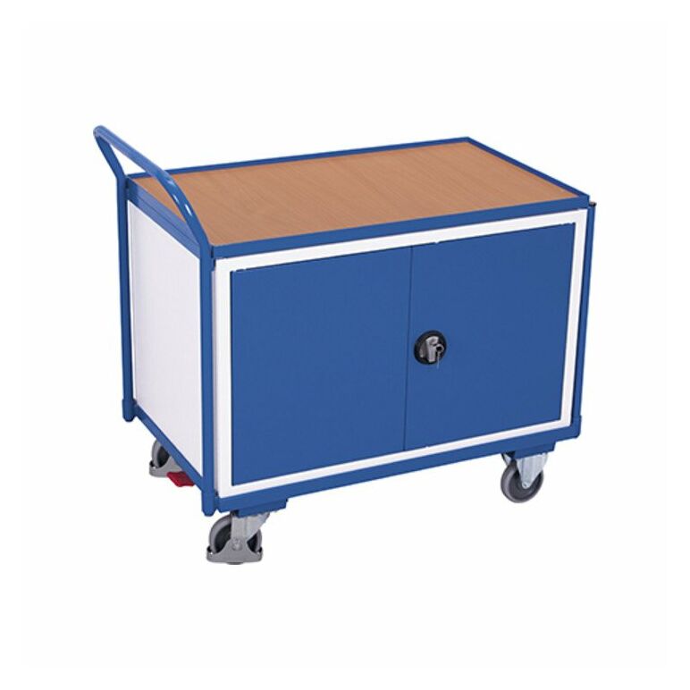 - Radsatz:Bereifung aus thermoplastischem Gummi auf Kunststofffelge mit Präzisions-Rillenkugellager, grau, spurlos, Ø 125 mm, 2 Lenkrollen mit Zentralbremse EasySTOP und 2 Bockrollen, Lenkrollen mit Fußschutz