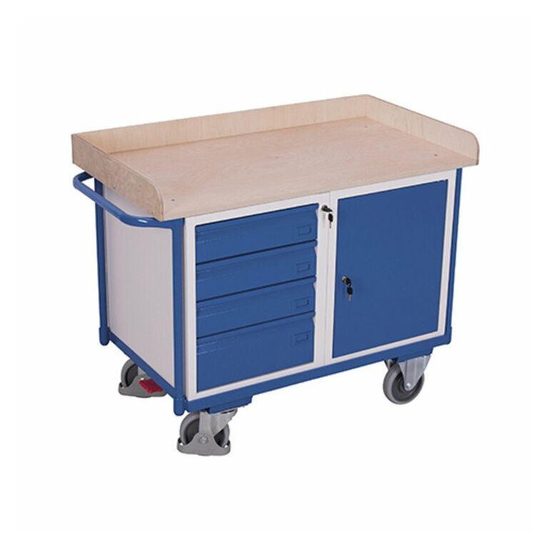 - 1 Schubladenschrank, mit 4 rollengelagerten Schubladen, verschließbar mittels Zentralschließung über Einzelauszugssperre