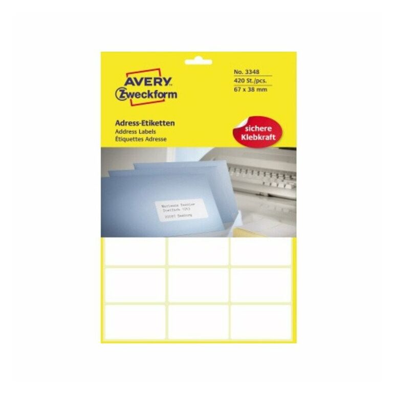420 AVERY Zweckform Adressetiketten 3348 weiß 67,0 x 38,0 mm