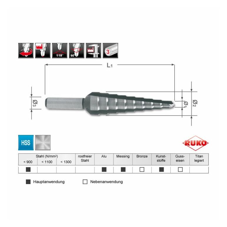 RUKO Stufenbohrer HSS Größe 0/9