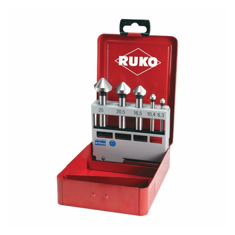 RUKO Kegelsenkersatz DIN335 C 90Grad 6,3-25mm HSS f.Alu Z.3 5tlg.Metallkassette