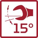 Rollgabelschlüssel: Maulstellung 15°, Kopf poliert mit aufgelaserter Skala, 40-50 HRC, Chrom-Vanadium-Stahl, verchromt