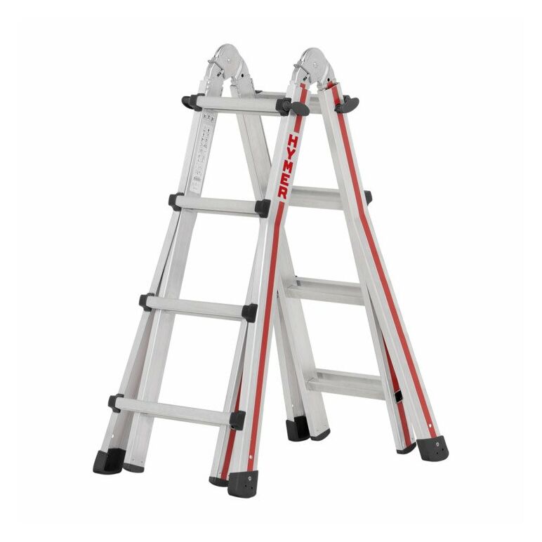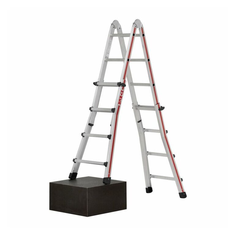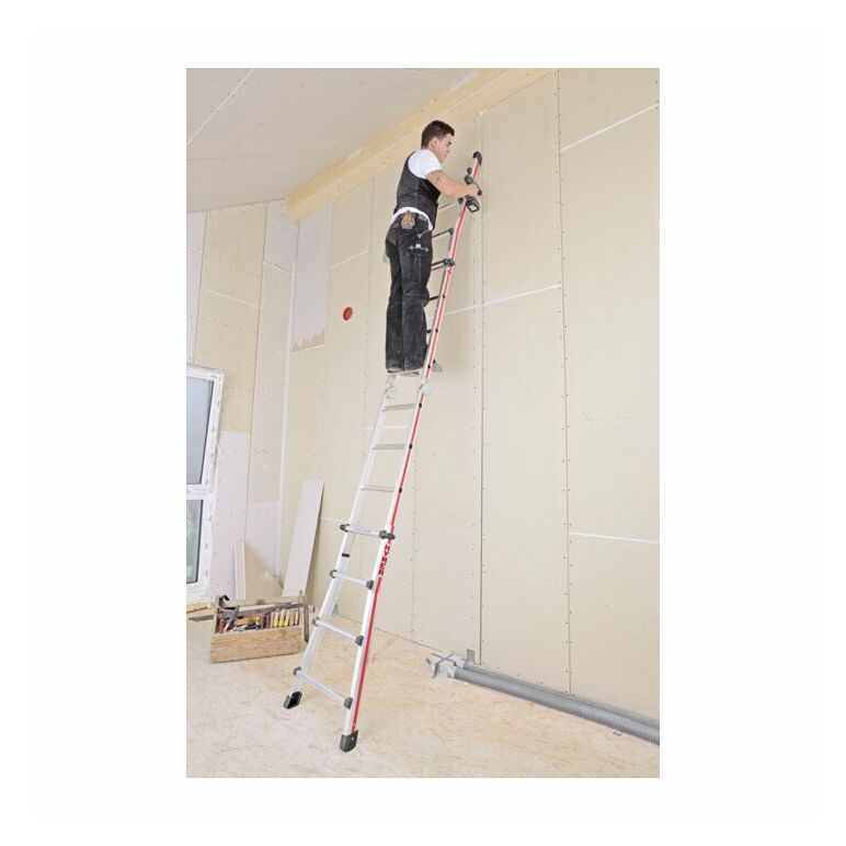 • Verwendbar als längenverstellbare Anlegeleiter, höhenverstellbare Stehleiter und Treppenstehleiter