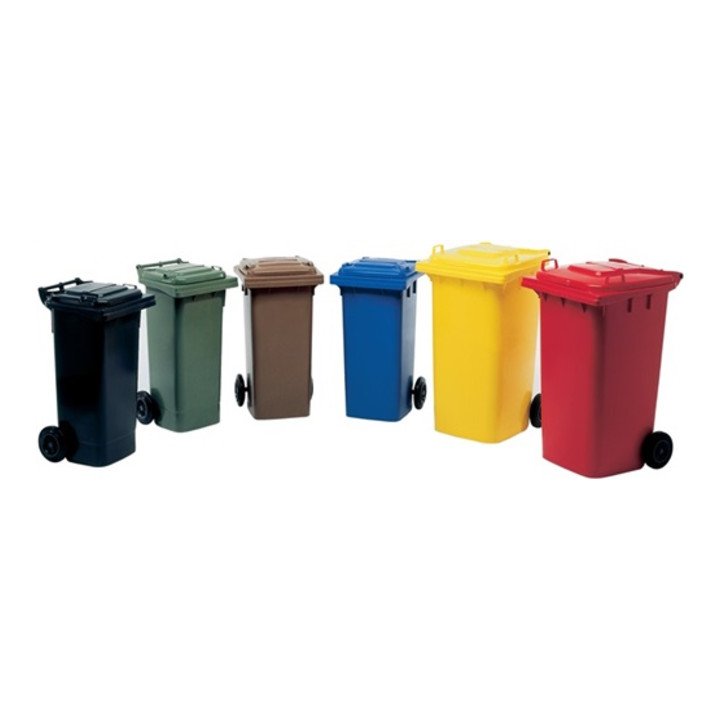 Kunststoff · nach DIN 840 · aus verrottungsfreiem, chemikalienbeständigen ND-Polyethylen · zwei laufruhige Vollgummi-Räder mit Rad-Ø 200 mm · vorderer Behälterrand mit Stütz- und Führungsrippen, sowie Gitternetz-Ausbildung für hohe Belastbarkeit · Doppelwinkelleiste für Sicherheit in der Schüttung · geringes Gewicht · leicht zu reinigen