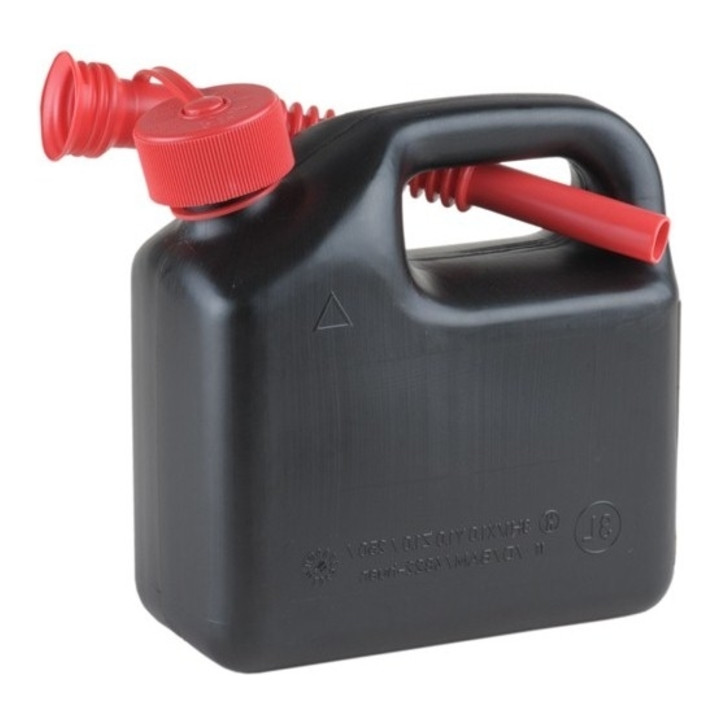 Kraftstoff-Kanister PREMIUM, 5L, schwarz, HD-PE mit UN-Zulassung für Benzin, Diesel und andere Gefahrgüter
